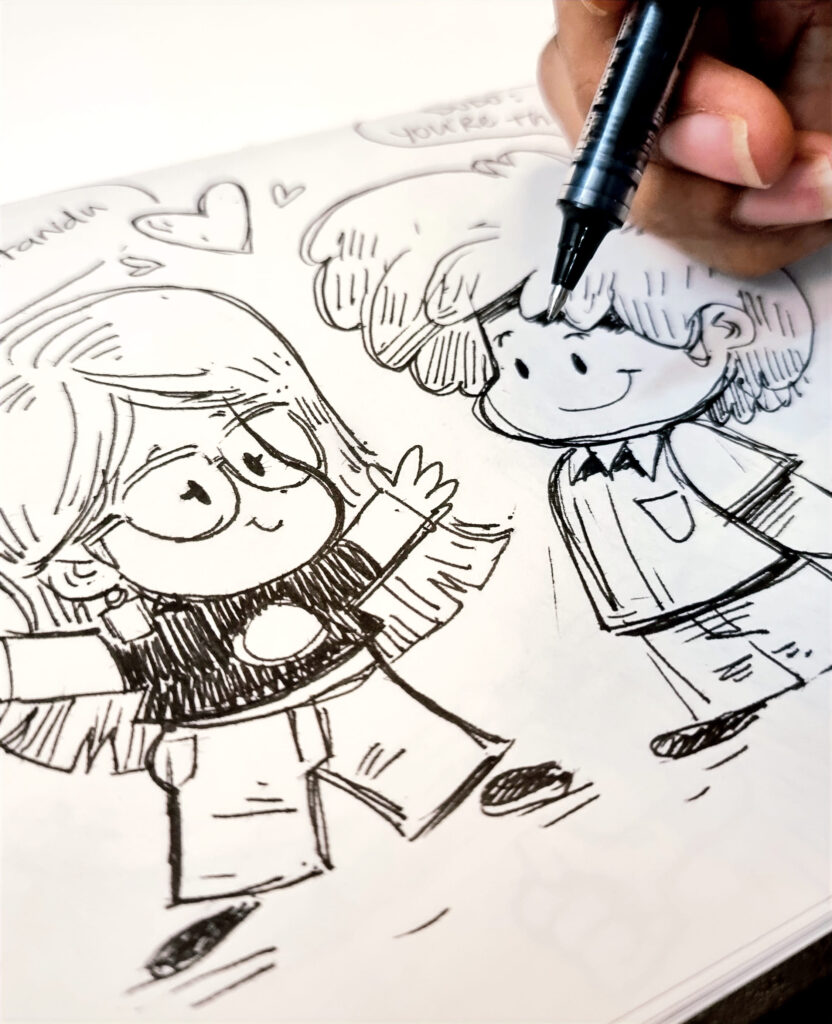 I went on a little side track and drew some ‘cartoons‘ of people and I really liked how they turned out 👇