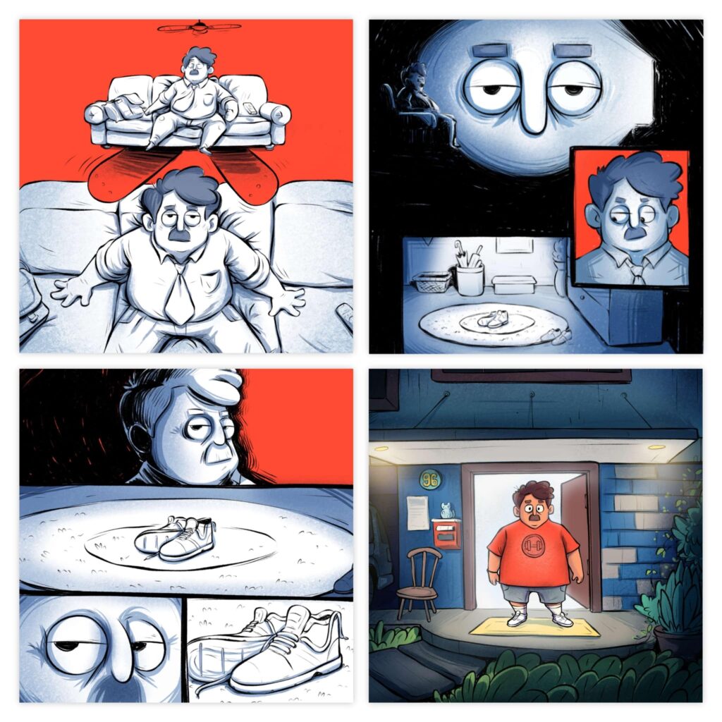 This is also the phase where you add your text bubble spaces and the speech that goes in it. This is key, don’t save this for later. 💬