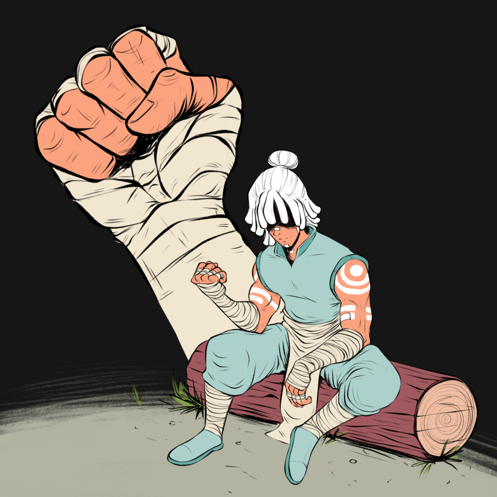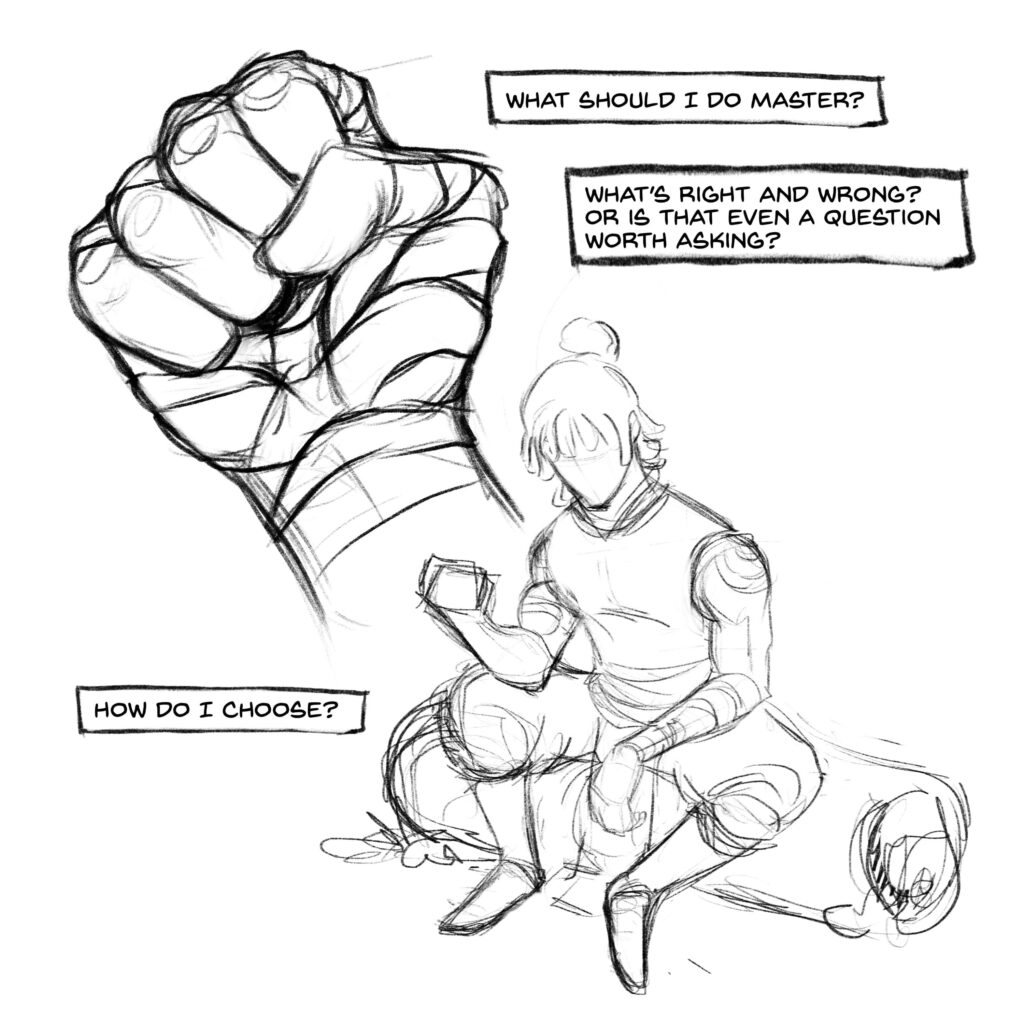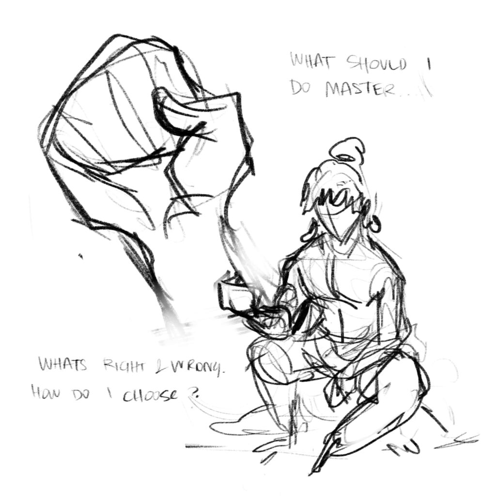 Step 2: Refine the Rough sketch with proper lines. I also use a lot of reference at this phase (ex : the hand)
