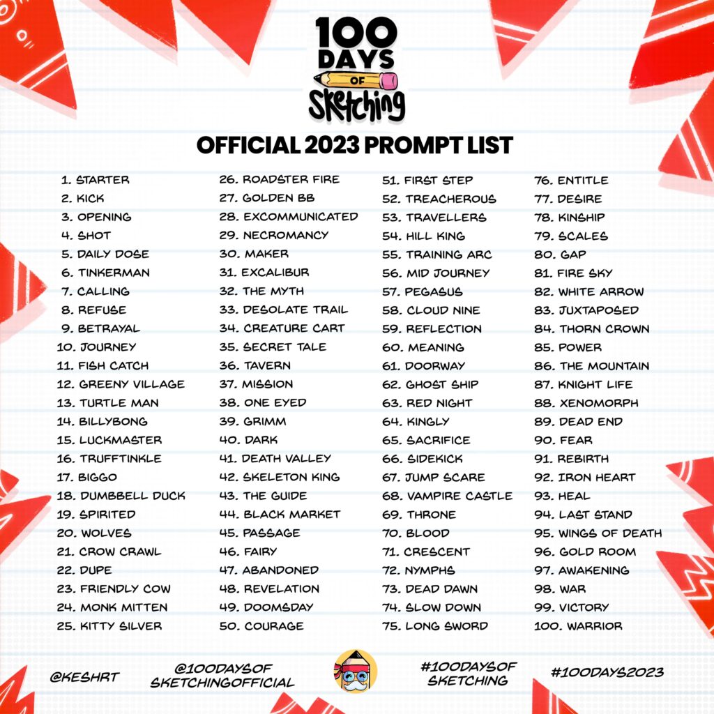 This year’s ‘100 Days of Sketching’ is in and here is the Prompt List for the year.