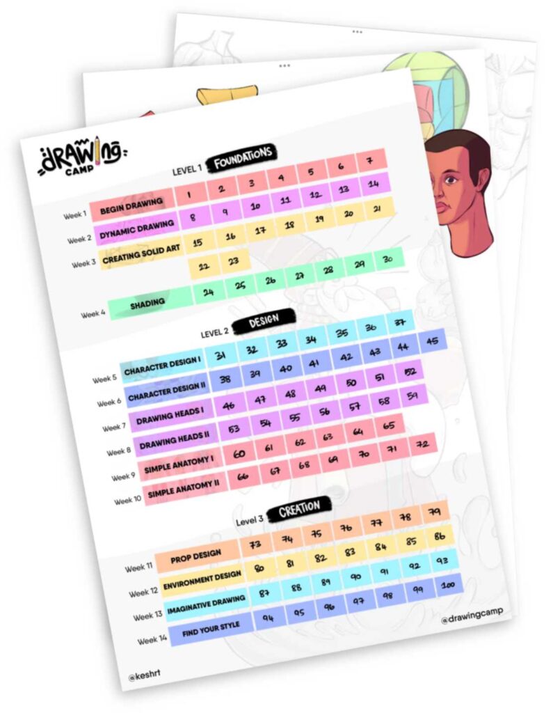 Drawing Camp is a Structured 100 Day Drawing program to learn and practice drawing.